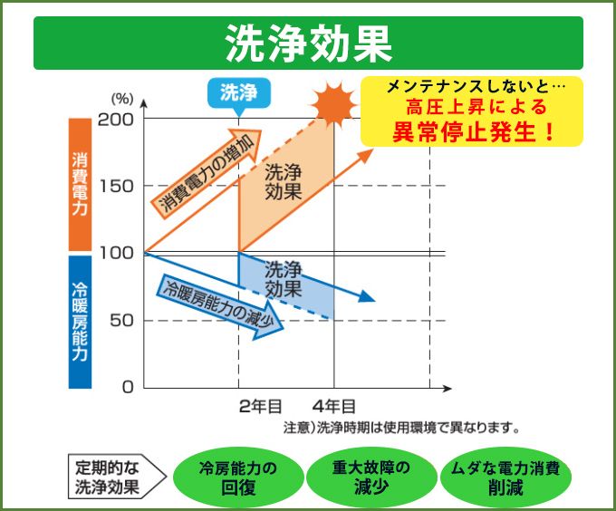 消耗品のトラブル以外のメンテナンスを受けつつ、年1回依頼ができる洗浄費用はメーカーによる洗浄等に比べ、非常に安価な価格設定です。安い洗浄価格の業者もありますが、表面のみの簡単な洗浄にとどまることもあり、これを素人が見抜くことは難しい場合があります。