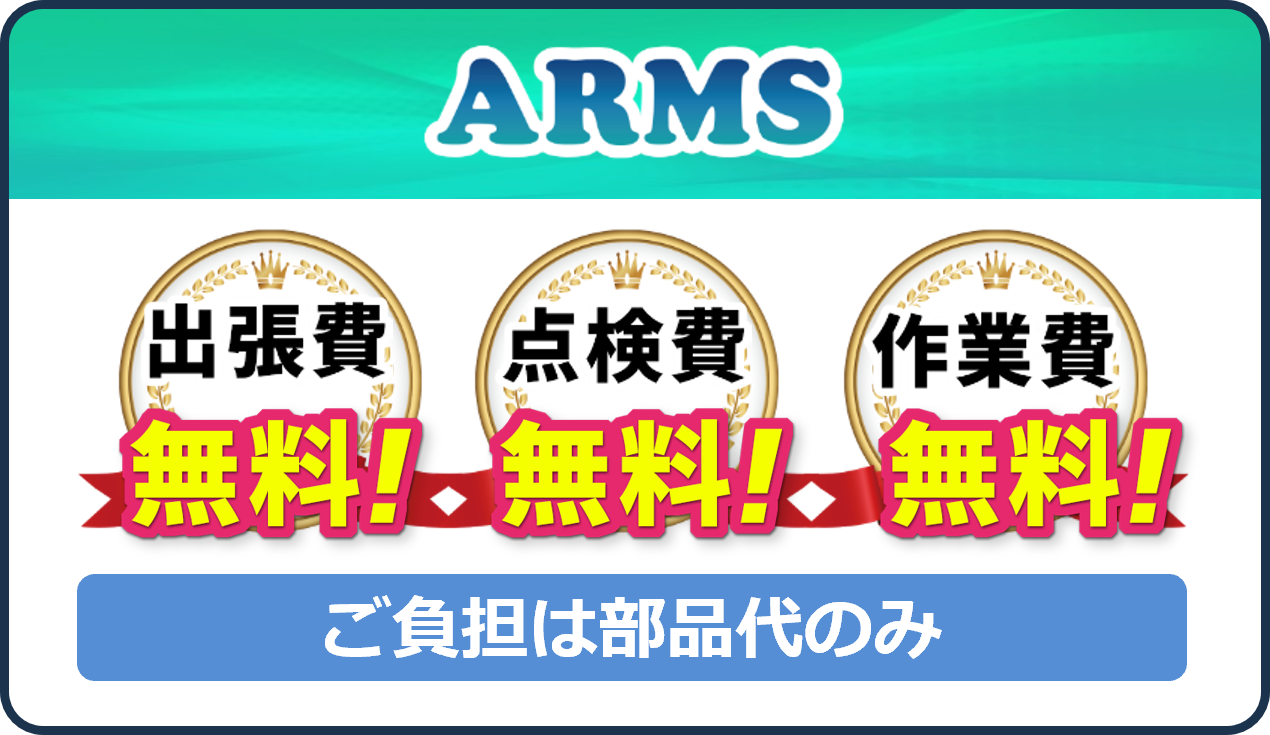 その点、ARMSの保守メンテナンスサービスは「いつでも出張費・点検費無料」。