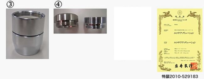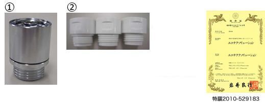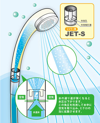 節水アダプター(JET-S)は、水量を絞り、水中に細かい空気を分散させます。