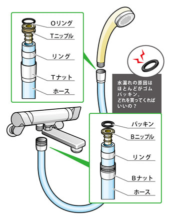 INAX社のシャワーホースの継ぎ手はTOTO等とネジ径は同じですが、継ぎ手自体が若干小さいため、シャワーヘッドのOリングが付けられない場合があります。この場合、Oリングを外して水道用シールテープをネジ部に巻いて取り付けをして下さい。